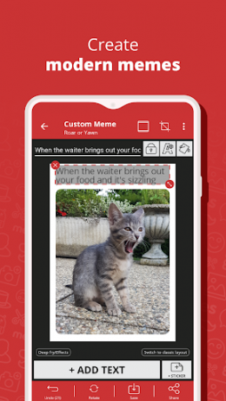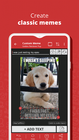 Meme Generator - Приложение поможет вам создавать самые разнообразные и смешные мемы, которыми можно будет поделится с друзьями и в социальных сетях. Выбирайте разные категории мемов, вы найдёте более 1000 готовых решений с подписями.