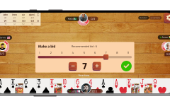 Вы должны разыграть карту одной масти в каждой взятке; если это невыполнимо, вы должны разыграть козырную карту, если хотите выиграть; если это также невозможно, вы можете сыграть любую карту, которая вам нравится. Чтобы увеличить свои шансы на выигрыш взятки, игрок всегда должен стараться разыграть самую старшую карту в руке. Право дилера ведет первую взятку любой масти. Игроки идут против часовой стрелки. Во время взятки побеждает старшая пика; в противном случае выигрывает старшая карта той же масти. Победители переходят к следующему трюку. Если игрок берет ровно свое заявленное количество взяток, он выигрывает. Каждый трюк Over добавляет 0,1 очка. Общий балл будет уменьшен, если предложенная ставка не будет выполнена. После четырех раундов игроки суммируют свои очки, чтобы определить цель пятого раунда. Победитель и занявший второе место объявляются после финального тура.