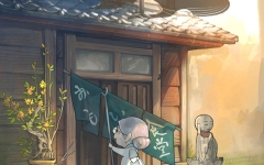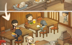 Старая японская закусочная находится в тихом переулке в безымянном жилом районе. Это место спокойное и, осмелюсь сказать, традиционное. В период Сёва телевидение начало набирать популярность в Японии. Пожилая дама будет работать с кассой, когда вы откроете сетчатую дверь. Она была оставлена ответственной за домашнее хозяйство после болезни мужа. Это нелегко, но она сильна и принимает правду. Расслабьтесь, положив ноги на один из старых деревянных столов. Присоединяйтесь к ритмичному стуку, стуку шеф-повара, нарезающего овощи. Мясо шипело на сковороде, издавая при этом шипящий звук. Легким движением руки кто-то готовит омлет. Спокойная атмосфера типичной домашней кухни. Твои заботы исчезнут, если ты посидишь здесь некоторое время. Заходи, закажи что-нибудь горячее и сиди здесь, пока ждешь.