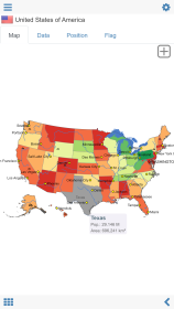 Вы заметите четкую и интригующую систему карт при посещении этого приложения. Пользователи могут просматривать более 260 карт стран со всего мира. Карты тщательно разработаны и точны до мельчайших деталей. Приложение также включает в себя систему флагов и другую информацию, такую как площадь, население и т. д. В результате вы лучше поймете страны мира. Координаты можно использовать для поиска территорий, регионов или стран по всему миру.