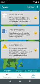 RandomNation предоставит статистику и диаграммы, которые отображают текущее состояние экономики и демографию нашей страны. Это значительно облегчит вам понимание информации и расписания. Вы имеете право активно обращаться за советом к своему консультанту, но сначала вы должны подумать, подходит ли это для текущей ситуации в вашей стране. Кроме того, вы можете играть в игру в автономном режиме, когда и где захотите, способом, который вам нравится и интересует, и способом по вашему выбору. Инвестиции в национальную систему здравоохранения и отношения с другими странами будут способствовать экономическому прогрессу страны. Избегайте субъективности, потому что многие оппоненты и недоброжелатели постоянно пытаются вас унизить. Вы ничего не сможете достичь, не стремясь быть самым честным, мудрым и справедливым политиком из всех возможных.Скачать RandomNation политическая игра (Мод, Unlocked) v2.0.8 MOD APK