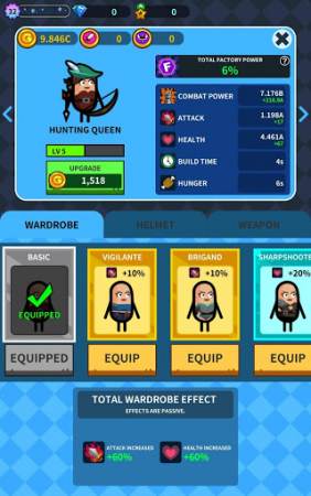 Открывайте свои заводы, на которых будете массово производите героев, а те в последствии будут отправляться сражаться с разными монстрами. Когда вы заработаете достаточно золота, можно будет модернизировать заводы и создавать ещё больше персонажей. В игре есть много типов самых разных героев, Лучник, мечник, маги, стрелки и многие другие. Выбирайте мощные навыки, усиливайте своих героев.