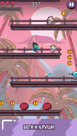 Сокрушайте врагов и прорывайтесь через препятствия, проходите большое количество безумных уровней. Что-бы получить особые возможности, вам нужно заполнить шкалу комбо, тогда вы сможете использовать неуязвимость, высокую скорость или что-то другое.