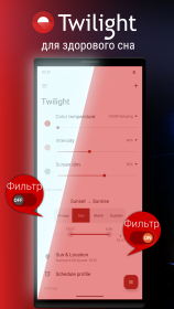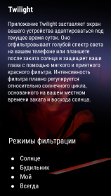 Twilight также предлагает пользователю гибкие настройки и персонализацию. Пользователи могут регулировать интенсивность цветового фильтра, выбирать время активации приложения и настраивать его согласно своим предпочтениям и расписанию.