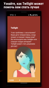Twilight - это выдающееся приложение, помогающее пользователям улучшить качество сна и бороться с бессонницей, что подтверждено положительными отзывами и рекомендациями многих пользователей. Это приложение предлагает инновационные методы помощи в засыпании, основанные на научных исследованиях и практическом опыте.