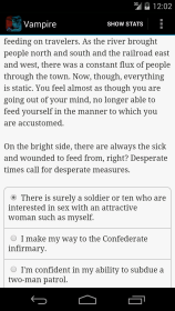В Choice of the Vampire игрокам предоставляется возможность взять на себя роль бессмертного существа и принять решения, которые определят их судьбу в мире, разделенном между светом и тьмой. Эта интерактивная книга Джейсона Стевана Хилла, состоящая из четырех томов, открывает перед игроками уникальный мир вампиров и людей, где каждый выбор имеет свои последствия. Начиная с "Битвы за Новый Орлеан", игроки вступают в схватку за власть и влияние в довоенной Луизиане.