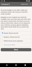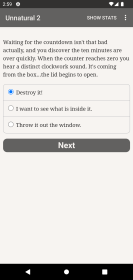 Поскольку останки команды «Сверхъестественное» используются для создания второго сезона «Неестественного», заложена основа для нового захватывающего приключения. В этом интерактивном романе ужасов Сэма Кэбелла, состоящем из 700 000 слов, вы играете роль нового главы организации и решаете, как она будет развиваться. Unnatural Season Two текстовая игра, управляемая безграничным потенциалом вашего воображения, управляется вашими решениями, которые определяют сюжет. Приготовьтесь к столкновениям с известными и незнакомыми Неестественными существами, древними опасностями и постоянно развивающейся историей.