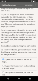 Hidden Sanctum представляет собой захватывающую интерактивную фэнтезийную игру, которая зануряет игроков в мир магии и мистики. Эта текстовая приключенческая игра, написанная талантливым Дариелом Иваленом, предлагает богатый и увлекательный сюжет объемом в 360 000 слов. Действие разворачивается в таинственном Скрытом святилище, где каждый игрок имеет возможность исследовать и открывать новые аспекты своей личности и взаимодействовать с миром вокруг.