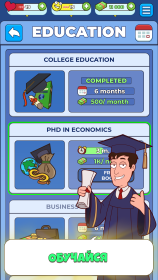 В процессе игры вам будут доступны различные возможности для повышения своего образования и получения новых навыков. Вы сможете проходить обучение, посещать университеты и улучшать свои финансовые знания. Кроме того, вы сможете инвестировать в фондовый рынок, чтобы увеличить свое состояние и обеспечить финансовую стабильность в будущем. Idle Guy предлагает увлекательный игровой процесс, где вы будете прокладывать путь своего персонажа от безработицы до достижения высокой должности в финансовой индустрии. Вы сможете следить за прогрессом своего персонажа, видеть его рост и достижения, а также сталкиваться с различными вызовами на пути к успеху.