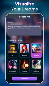 Ensoul: AI Art Generator - это уникальное приложение, которое обладает всеми необходимыми качествами для создания вдохновляющих и уникальных произведений искусства. С помощью нейросетей искусственного интеллекта пользователи могут генерировать картины различных стилей и направлений без необходимости внесения сложных параметров.