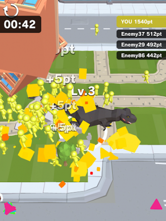 Устройте самый настоящий хаос на улицах разных городов! Скорее берите под контроль огромного динозавра и отправляйтесь крушить всё что видите. Кроме разрушений вы сможете проесть есть местных жителей, если догоните конечно - они тоже умеют бегать.