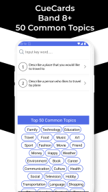 Погрузитесь в захватывающий мир этого революционного IELTS Speaking, предлагающего различные функции. В нем находится уникальная система подсказок с примерами ответов, облегчающая обучение без стресса. Кроме того, он предоставляет комплексный устный тест, по сути имитирующий реальную сделку. Более того, приложение разбивает сложный устный тест на управляемые части, предлагая вопросы и ответы для частей 1, 2 и 3 теста. Вишенкой на торте является его обширная коллекция разговорной лексики, охватывающая 20 общих тем. Это все равно, что иметь личного карманного репетитора по словарному запасу!
