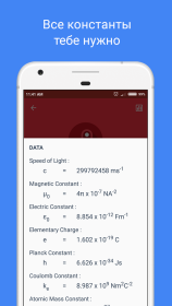 В Physics Pro включено более 25 важных и фундаментальных тем по физике, каждая с кратким обсуждением и красивой эмблемой. Благодаря такой широте охвата студенты могут сосредоточиться на конкретных областях, представляющих интерес. В приложение включен обзор и справочный материал в виде элементарной математики. Организованные в приложении формулы, уравнения и подробные описания по каждому предмету делают его удобным для использования учащимися с разным физическим образованием и уровнем опыта. Таблица данных, включающая все важные константы, является одной из самых ценных функций приложения. Вам нужен быстрый обзор физических констант, чтобы помочь вам с вашей домашней работой или учебой? Отложите поиски! Этот удобный инструмент дает вам быстрый доступ к фундаментальным константам, которые вы будете использовать при изучении физики.