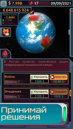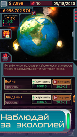 Конец света: Заражение мира (Мод, Много денег/без рекламы) - Человечество стало жить в эпохе деградации. Ваша задача - очистить планету от человечества. Вы самостоятельно будете контролировать сюжет вашего конца света. Заражайте людей опасными вирусами, что-бы погибало как можно больше, стоит учесть тот факт, что человечество тоже не будет сидеть на месте, оно будет активно сопротивляться.