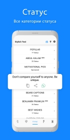 Если бы выражение было холстом, стильный текст, шрифты и клавиатура были бы вашими красками и кистями. Stylish Text предлагает новый подход к наполнению ваших обычных текстовых сообщений индивидуальностью и талантом, что дает вам преимущество во взаимодействии с другими пользователями в Интернете. Ваши повседневные разговоры с приятелями могут быть превращены из обычных в фантастические с помощью Стильного текста, который использует широкий спектр готовых декоративных текстов, чтобы придать вашим сообщениям немного колорита.