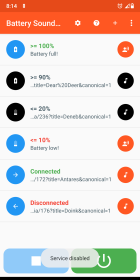 Звуковое уведомление о батарее - это приложение, которое предоставляет пользователю возможность настроить звуковые уведомления в зависимости от уровня заряда батареи. Вот несколько ключевых особенностей этого приложения: Приложение работает в фоновом режиме и автоматически запускается при загрузке устройства, а также после обновлений. Это гарантирует непрерывную работу и обеспечивает надежный мониторинг уровня заряда аккумулятора. Пользователи могут настроить звуковые уведомления для разных уровней заряда батареи. Например, они могут выбрать песню или звуковой эффект для полностью заряженной батареи и другой для более низкого уровня заряда. Это добавляет элемент персонализации и позволяет пользователю выбрать звук, который ему нравится.