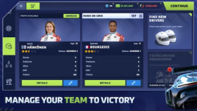 Один из ключевых аспектов игры - выбор гонщиков для вашей команды. Выбирайте из исключительных гонщиков и собирайте команду, которая сможет достичь победы. Вам предстоит развивать навыки ваших гонщиков и разрабатывать мировой класс техники, чтобы создать конкурентоспособный автомобиль.