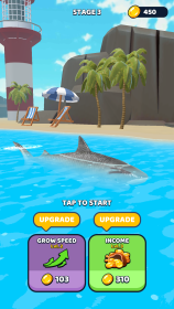 Sharky Jump обладает красочной графикой, простым управлением и захватывающим игровым процессом, который подарит вам часы увлекательного времяпрепровождения. Прыгайте, атакуйте и растите, чтобы стать королем океана в этой захватывающей игре!