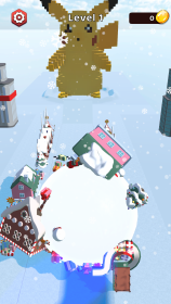 Визуально игра оформлена в ярких и привлекательных тонах, что делает ее приятной для глаз. Анимация увеличения снежка и взаимодействия с объектами на пути выполнена качественно, создавая ощущение настоящего участия в зимнем приключении.