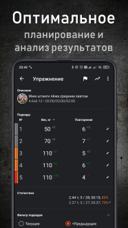 Запись результатов упражнений является ключевым моментом в достижении поставленных целей, и программа обеспечивает удобный и эффективный способ делать это. В приложении вы найдете все необходимые инструменты для отслеживания вашей тренировочной деятельности, включая суперсеты, трисеты, гигантсеты и круговые тренировки. Это позволяет вам вести учет каждого упражнения и анализировать ваш прогресс со временем.