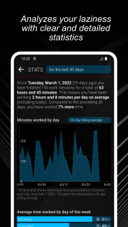 Установите себе ежедневные цели по времени и продуктивности, которые соответствуют вашим задачам и целям. Структура приложения способствует поддержанию вашей концентрации и внимательности во время каждого сеанса работы.