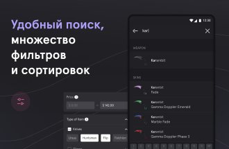 Обмен скинов в CS:GO с удобным поиском и авторизацией через Steam