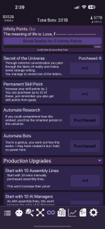 Idle Dyson Swarm интригует своей возможностью играть в расслабляющем режиме, одновременно погружая игроков в глубокий стратегический опыт. Вам предстоит решать, как лучше распределить ресурсы, какие технологии развивать и как оптимизировать сбор энергии, чтобы построить самый эффективный и мощный Рой Дайсона во вселенной.
