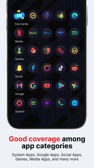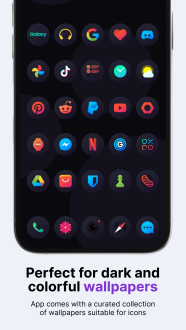 Набор иконок Hera Dark содержит более 5400 современных круглых иконок с красочными градиентами, идеально подходящих для темных тем обоев. Его чистая эстетика прекрасно сочетается с любым лаунчером, что делает его универсальным вариантом для оживления домашнего экрана. Благодаря активной разработке, которая добавляет новые иконки дважды в месяц, Hera Dark наверняка станет любимым набором иконок для минималистичных темных настроек.