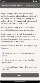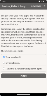 Restore, Reflect, Retry — это уникальная интерактивная игра-головоломка, основанная на захватывающем романе ужасов от известного автора Натальи Теодориду. Особенность этой игры заключается в том, что она полностью текстовая, что позволяет игрокам погружаться в историю, полагаясь исключительно на силу своего воображения. Вам предстоит принимать важные решения на каждом этапе игры, определяя судьбу персонажей и приводя историю к различным концовкам.