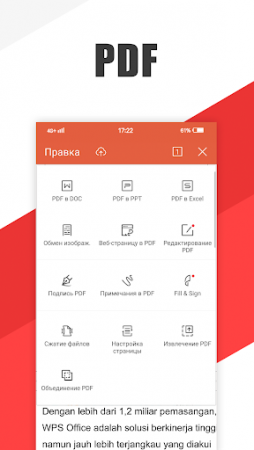 Интеграция WPS AI выводит продуктивность на новый уровень: тебе доступны интеллектуальные функции вроде генерации контента, ChatPDF для общения с документами, переработки текста и распознавания текста (OCR). Встроенная библиотека шаблонов, совместная работа над файлами, формы и конвертеры делают приложение не просто редактором, а полноценной рабочей средой. Это идеальный выбор для тех, кто хочет держать весь офис в одном кармане — компактно, удобно и бесплатно.