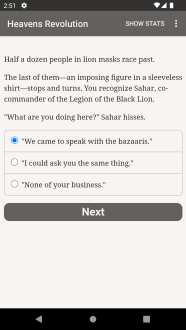Революция небес: Лев среди кипариса — это интерактивный ретрофутуристический фэнтезийный роман от Питера Адриана Бехравеша, вдохновленный культурой и атмосферой Ирана восемнадцатого века. В этой игре ваш выбор определяет развитие сюжета и будущее мира, полного магии, технологий и приключений. Игра представляет собой полностью текстовый роман, состоящий из 270 000 слов и сотен возможных вариантов. Без графики и звуковых эффектов, она позволяет вам погрузиться в увлекательное повествование, используя силу вашего воображения.