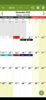 Shift Work Calendar - FlexR – это идеальное решение для всех, кто работает по сменам и нуждается в гибком и удобном инструменте для управления графиком. FlexR Pro поможет вам оставаться в курсе всех смен, будь то утренние или ночные, а также выходные дни. С его помощью больше не придется записывать свои часы на случайных бумажках или пытаться вспомнить, когда следующий день отдыха. FlexR Pro позволяет вам взглянуть не только на будущие смены, но и отследить, что было в предыдущих неделях.