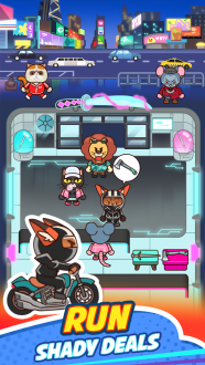 Mafia Business: Idle Tycoon – это уникальный симулятор, где вы отправитесь в захватывающее криминальное приключение, управляя миром стильных гангстеров-животных! Постройте империю, начав с небольшого ресторана или скромной кухни, и превратите её в центр нелегального бизнеса. Здесь ваши модные питомцы будут готовить вкусные блюда для клиентов или изготавливать оружие в теневой кузнице – всё ради процветания вашей криминальной сети.