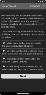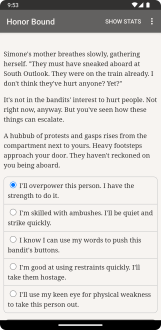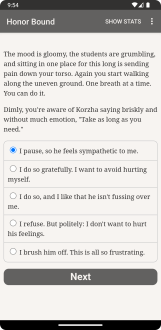 Honor Bound — это текстовая игра, в которой каждый ваш выбор меняет ход событий. На протяжении 595 000 слов вам предстоит пережить интригующую историю, полную неожиданных поворотов. Став телохранителем подростка-наследника, вы обнаружите, что за внешним спокойствием элитной школы скрываются сложные отношения и тайны. Отложив свою карьеру в вооружённых силах, вы отправляетесь в путь к восстановлению не только здоровья, но и своей репутации.
