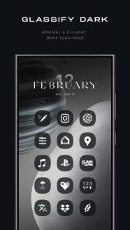 Каждый значок в пакете продуман до мельчайших деталей и подходит для большинства популярных приложений. Особое внимание уделено созданию цельной эстетики, особенно для пользователей телефонов Samsung, так как значки вдохновлены стилем пользовательского интерфейса данной марки. Превратите свой домашний экран в нечто особенное с Glassify Dark Icon Pack!