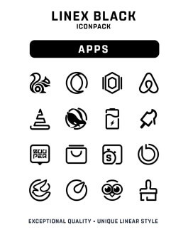 Каждая иконка в LineX Black IconPack — это настоящий шедевр, объединяющий минимализм и творческое мастерство. Установите этот набор, чтобы подчеркнуть эксклюзивный стиль вашего устройства и сделать экран действительно уникальным. Преобразите свой мобильный опыт с этой идеальной комбинацией дизайна и функциональности!