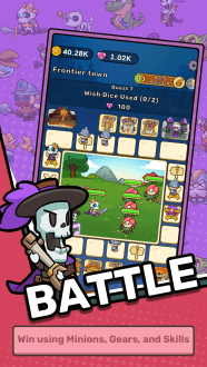 Dungeons Go предлагает вам стать Королём костей, чтобы выступить против полчищ искателей приключений, стремящихся отобрать богатства тёмных глубин. Победите людей, эльфов, гномов и прочих врагов, подчиняя их себе и расширяя территорию. С каждым броском костей вы будете получать золото, алмазы и опыт, что позволит развивать подземную крепость и укреплять свою армию.