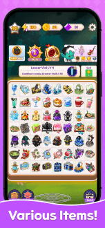 В Magic Craft - Merge Tycoon вас ждет увлекательное путешествие в мир магических материалов, где ваша задача – объединять мистические ингредиенты, чтобы создавать удивительные волшебные предметы. Смешивайте древние травы в стеклянном флаконе, чтобы приготовить зелье, объединяйте пергамент с силой волшебных грибов для создания свитков темной магии, и не останавливайтесь на достигнутом – экспериментируйте, создавая волшебные костюмы, красочное снаряжение и даже вкусную магическую еду.