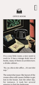 Your House – это необычное произведение, которое можно назвать настоящей текстовой головоломкой. Проект поражает своей оригинальностью и масштабностью, предлагая уникальное сочетание загадок, тайн и глубоких историй. В старинном доме, где реальность постоянно меняется, судьба сводит две женщины: одна – юная, еще ищущая ответы на вопросы жизни, а другая – более мудрая, стремящаяся принять себя. Лабиринт коридоров и комнат особняка таит в себе неожиданные сюрпризы, заставляя игроков размышлять и искать скрытые смыслы в каждой детали.
