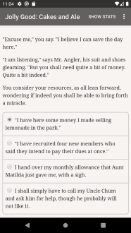Jolly Good: Cakes and Ale — это текстовая приключенческая игра с юмором, викторианским шармом и элементами интриг. Ты — новый член лондонского клуба "Благородные газы", где каждое решение ведёт к деньгам, скандалам или славе. Каждые пять минут ты придумываешь очередной план, ввязываешься в социальную игру, плетёшь интригу — и пытаешься выйти из всего этого с минимальными потерями (и полным бокалом).