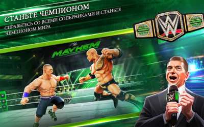WWE Mayhem - это игра, которая предоставляет вам шанс стать частью адреналиновой борьбы в стиле WWE и собственной карьерой гладиатора. Главный персонаж этой игры, рок-актер, известен своими выдающимися актерскими навыками и мускулистой физической формой, а также прошлым опытом в профессиональной борьбе. WWE Mayhem дает вам возможность погрузиться в мир профессиональной борьбы и стать суперзвездой WWE.