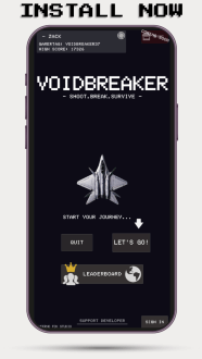 Voidbreaker — это 2D-шутер с видом сверху в стиле ретро-аркад, где ты управляешь звёздным истребителем и отбиваешься от нескончаемых волн врагов. Каждые пять минут — это полёт на грани: манёвры, стрельба, взрывы, уклонение от астероидов и охота за очками. Всё идёт по плану… пока ты не наберёшь 500 и не появится он.