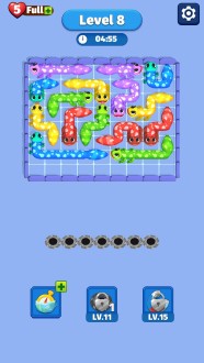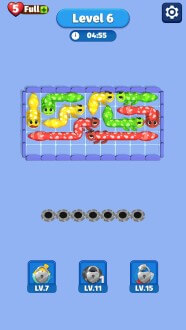 Уровни усложняются — появляются повороты, перекрёстки и ограниченные ходы. Нужно точно планировать: длина тела геккона имеет значение, и путь к нужному отверстию не всегда прямой. В игре десятки уровней, поддержка офлайн, нет жёсткой рекламы или обязательного доната. Если хочешь расслабиться, но не отключать голову — Color Gecko Out даст отличную зарядку вниманию и реакции.