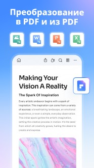PDFelement — это не просто просмотрщик, а многофункциональный инструмент для работы с PDF, который сэкономит тебе кучу времени. Нужно превратить отчёт в Word? Перетащить таблицу в Excel? Подготовить слайды из текста? Пара касаний — и готово. Приложение конвертирует файлы в самые популярные форматы без потери структуры и с сохранением оформления.
