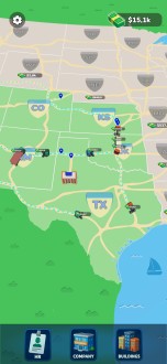 Бюджет растёт — вкладывай прибыль в апгрейды грузовиков: двигатель +40 л. с., длинная спальня или хромированный бампер. Реальная карта США делится на 50 зелёных и серых областей: открывай Аризону за 12 000 $, формируй цепочку рейсов и смотри, как парк из 15 тягачей мчится по I-95. Заправки снижают расходы, ремонты гасят поломки, а штаб-квартира в Далласе капает доход, пока ты офлайн. Обойди конкурентов и сделай из маленькой конторы логистическую империю — скачай игру и трогай с места!