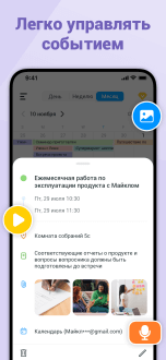Пролистывай гибкие виды календаря — месяц, неделя, день или упорядоченный список; перетаскивай события пальцем и задавай до трёх напоминаний на каждую запись. Умные напоминания сочетают вибрацию и всплывающее окно, а виджет на главном экране держит ближайшие дела на расстоянии одного взгляда. Все данные синхронизируются с Google и Exchange, доступны офлайн, а экспорт в CSV упрощает отчёты. Установи приложение и посмотри, как одна строка плана разгружает целый день.