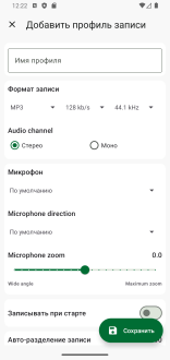 Мощный диктофон с гибкими настройками и без ограничений по времени