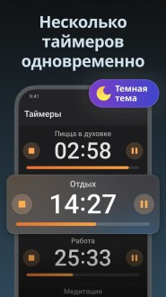 Помимо одновременных таймеров, приложение хранит и точный секундомер с кругами, подходит для интервальных тренировок и кулинарии. Каждый счётчик настраивается: вибрация, сигнал, собственная иконка. Можно задать циклы «работа-отдых», запланировать утренний кофе и вечернюю медитацию, а статистика покажет, сколько минут ты освободил. Таймеры синхронизируются с облаком, поэтому они под рукой на любом устройстве, даже если телефон остался в рюкзаке.
