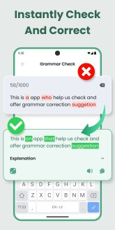 Grammar Check by AI Corrector — это умный инструмент для тех, кто хочет писать по-английски грамотно, чётко и уверенно. Приложение автоматически выявляет ошибки, предлагает корректные варианты и помогает улучшить стиль текста. Всё работает быстро, точно и удобно. Перефразирование, грамматический анализ и встроенный словарь делают это приложение универсальным помощником в письме — как для учёбы, так и для работы.