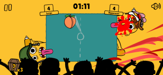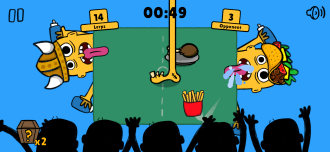 Tong: Food Fight — это безумная PvP-аркада, где ты принимаешь участие в самом необычном соревновании — облизывании еды на скорость и результат. Твоя задача — покрыть как можно большую часть аппетитных объектов своим языком раньше соперника. Каждое блюдо становится ареной для эпичного противостояния, где каждая капля соуса и каждая крошка имеет значение. Визуально игра полна ярких деталей, весёлых персонажей и зрителей, которые активно реагируют на происходящее, подогревая напряжение в поединке.